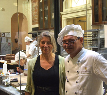'Caf'e Demel' is reputed to be Vienna's most famous 'Kaffeehaus', where I'm meeting Head Chef Dietmar Muthenthaler who has promised to show me around Demel's kitchen and gen me up on Viennese pastries. His welcoming smile is as warm as the cosy Demel's interior, wooded panelled rooms, where the rich scents of coffee linger in the air as the waitresses serve breakfast to the early morning punters. Here is everything I dreamed of finding in a Viennese coffee house and I have a distinct feeling of well-being as I look around me. Large chandeliers suspended over heavy marble